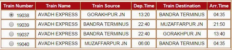 Now, what if there are many trains with the same name? Don't worry! The system will list all the trains with the same name. Look at the screenshot of the trains returned for the above mentioned train.